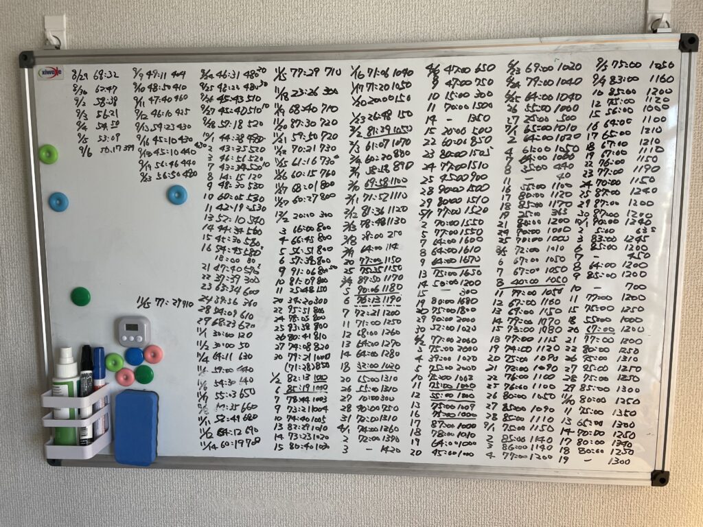 たまたま目に付いたホワイトボードに、最初の5日間は「時間」だけを書いていた。